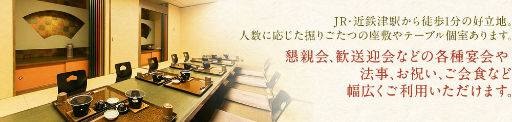 JR・近鉄「津駅」から徒歩1分。「ホテルグリーンパーク津」2階の津みやび。