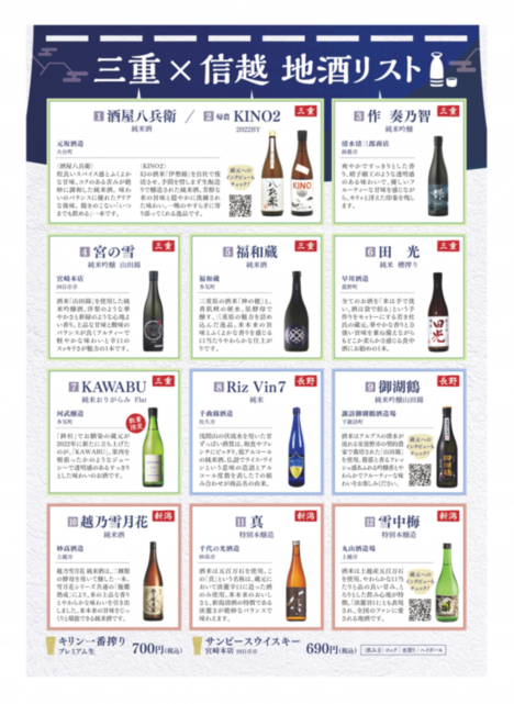 三重と信越(長野・新潟)の地酒、全12種類を取り揃えました。