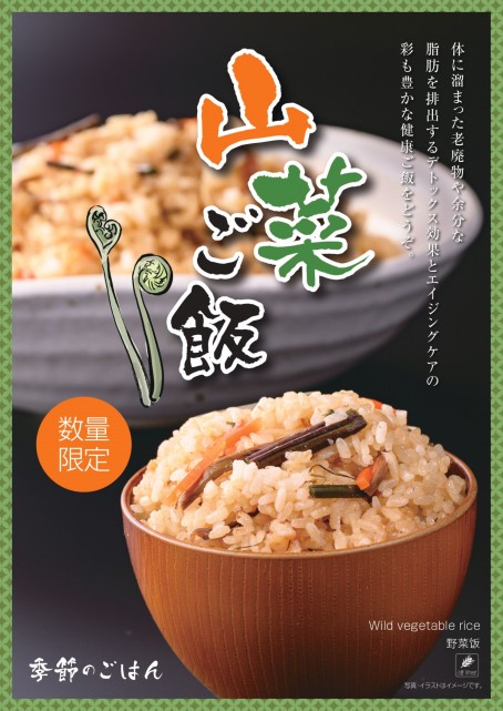 販売開始は随時となりますが、5月は「山菜ご飯」を提供いたします。