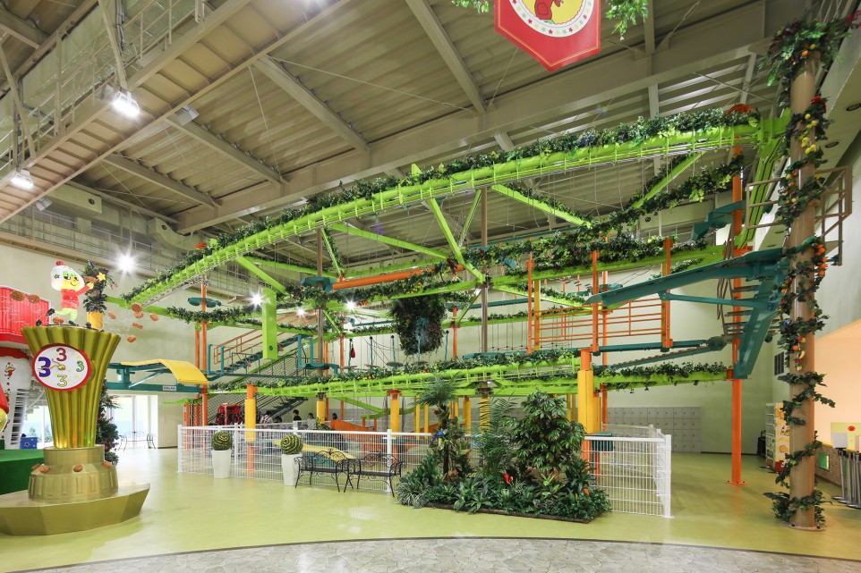 屋内日本最大級の空間立体アトラクションで、ボールブランコやボルダリング、スライダーなど盛りだくさんです。
