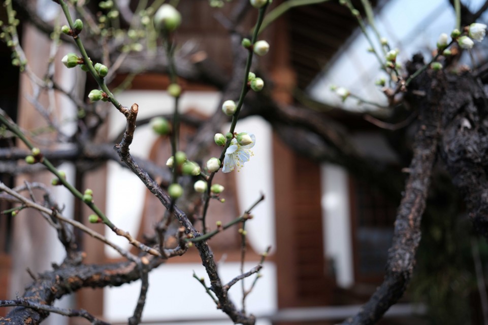 「みろく院」も、一輪、二輪ですが、白梅の花が咲いてきています。