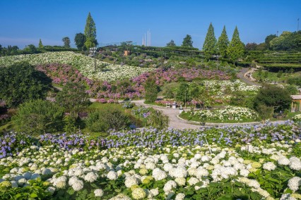 約78,000㎡の広大な丘陵地になんと53品種、77,700株のあじさいが咲きます。