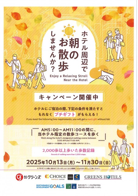 ただいま当ホテルでは「ホテル周辺でお散歩しませんか?」キャンペーンを開催中です。