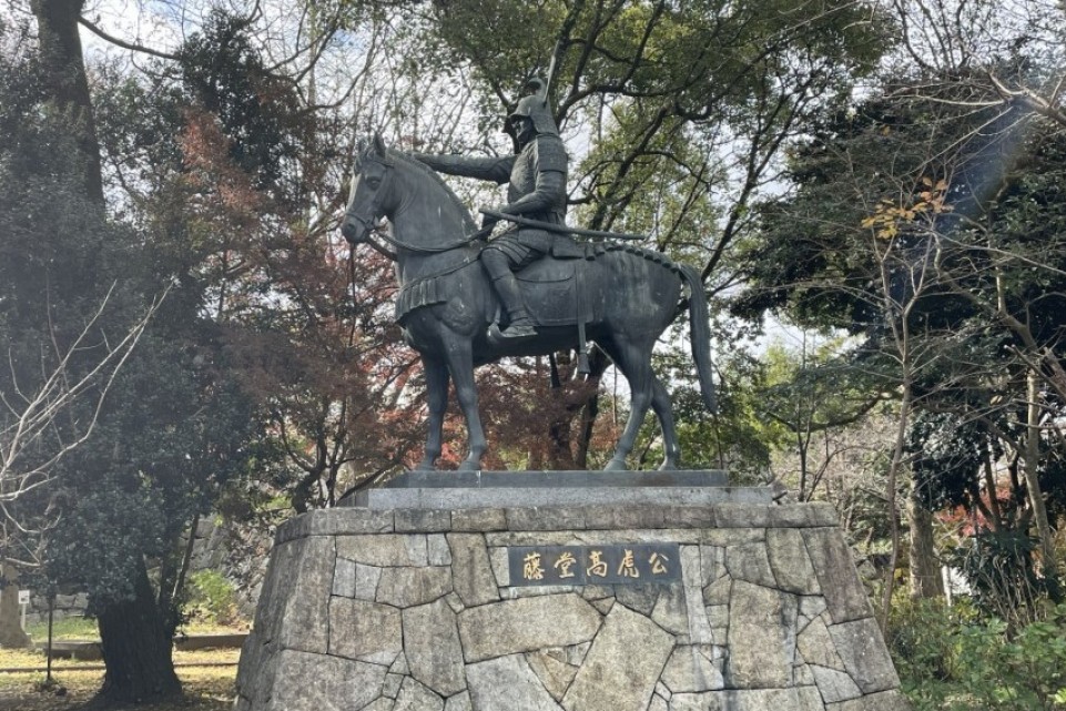 澄み渡った空気の中、高虎公の銅像を見ながら歴史に