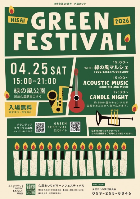 今回は久居グリーンホテルから徒歩圏内で開催される注目イベント「GREEN FESTIVAL 2026」をご紹介いたします。