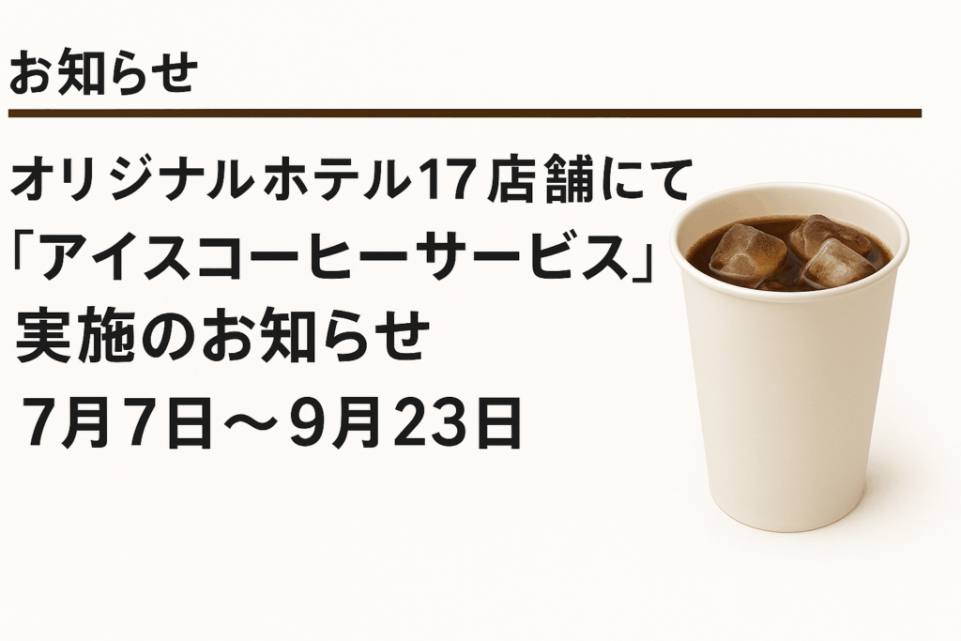 外から戻られた際や、ご滞在中のひとときに、冷たいコーヒーで少しでも涼を感じていただき、快適にお過ごしいただければ幸いです。