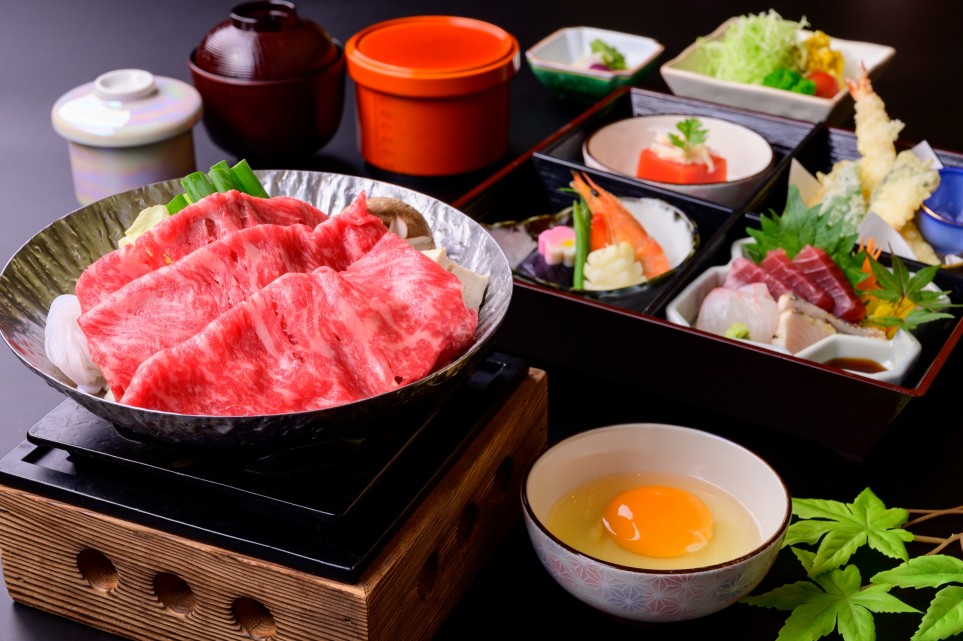 松花堂御膳と松阪牛すき焼き鍋 (ホテルグリーンパーク津/鈴鹿)
