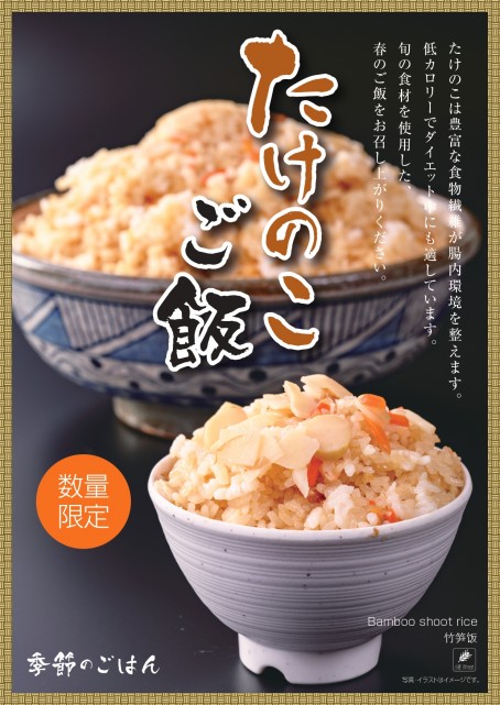 販売開始は随時となりますが、4月は「たけのこご飯」を提供いたします。