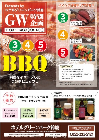 【GW特別企画】BBQランチビュッフェのご案内