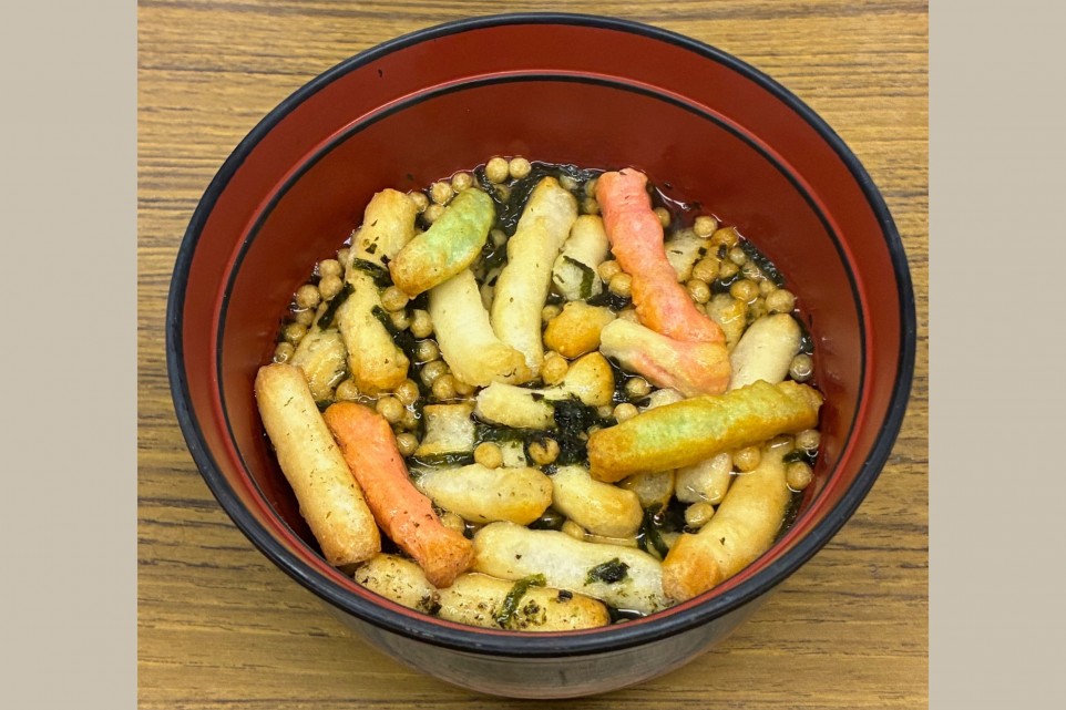 お湯を入れてすぐ食べれば、あられの食感が残ったサクサク感を、