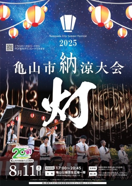 今年は亀山市市制施行20周年記念として、「スカイランタンの打ち上げ」を実施するほか、