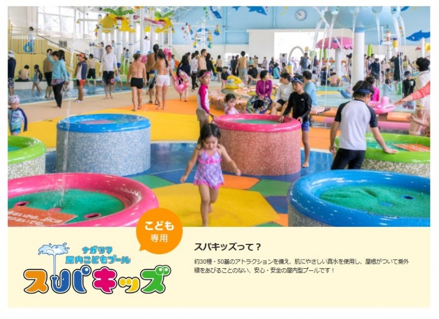 スパキッズはナガシマジャンボ海水プール内にある全天候型のキッズ専用プールで、