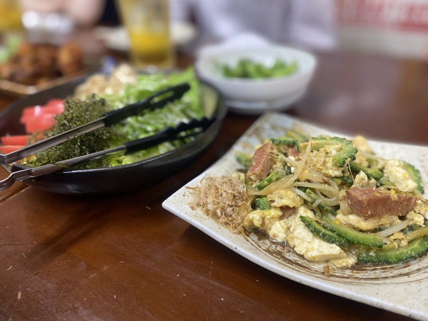 名和プラザホテルから徒歩約5分、「うちなー家 海茶」は、沖縄の家庭料理が楽しめる大衆食堂で、地元の方にも愛される隠れた名店です。