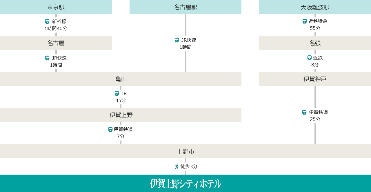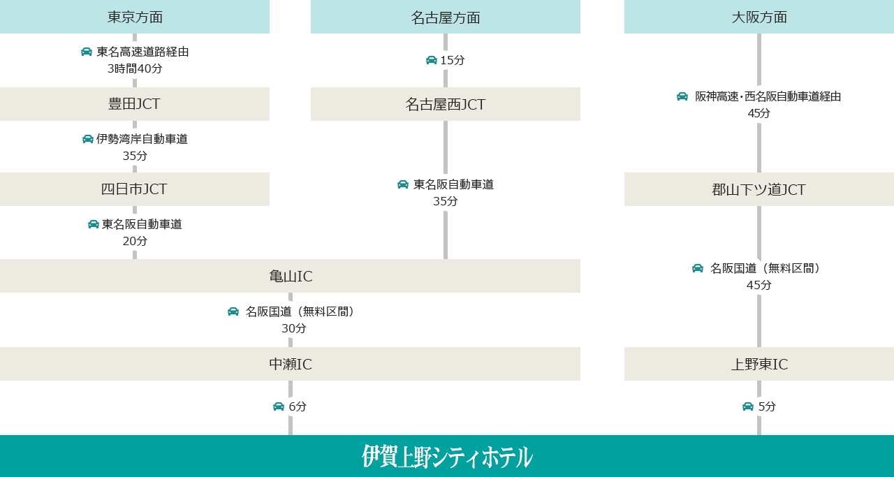 | お祭り期間の駐車について | 例年開催される上野天神祭の3日間は、交通規制により当ホテルの駐車場ならびに 契約駐車場をご利用いただけません。出来る限り公共交通機関をご利用ください。 |