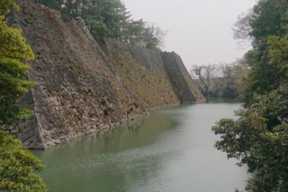 伊賀上野城の高石垣は、高さ約30メートルを誇り、現存する城郭石垣としては日本有数、最大級の