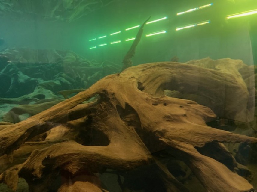 館内では、出土した場所そのままに発掘現場に地下水を満たした水中展示や、