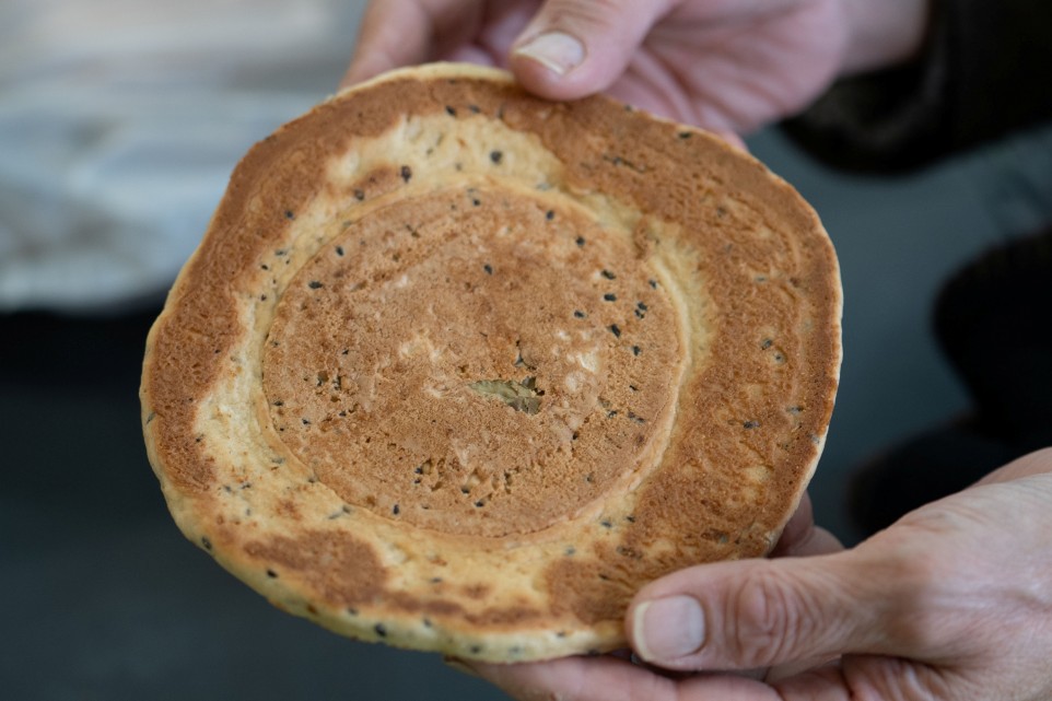 湯の山温泉の温泉水を使って生地を練り上げた、直径約15cmの大きな堅焼き煎餅。