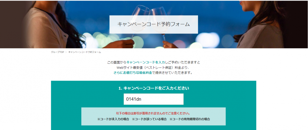 1泊2食付プランの割引コードは「おいしいディナー」と覚えてくださいね♪