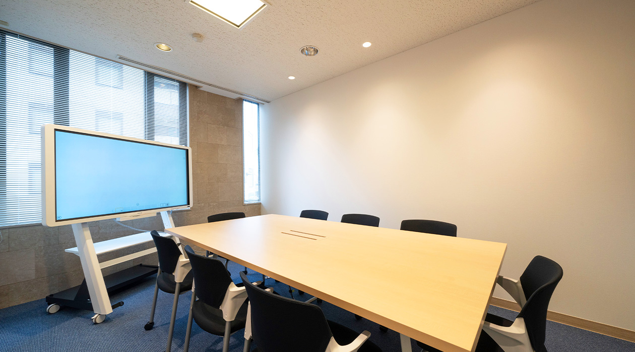 いつでもキレイで快適、会議・商談のスペースとして安心してご利用いただけます。Wi-Fiやコンセント、モニターの利用も可能です。