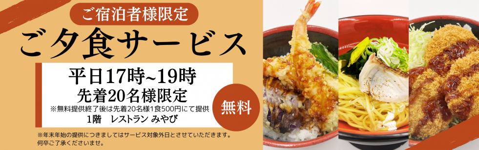 当ホテルでは現在、平日17:00~19:00の時間内におきまして、