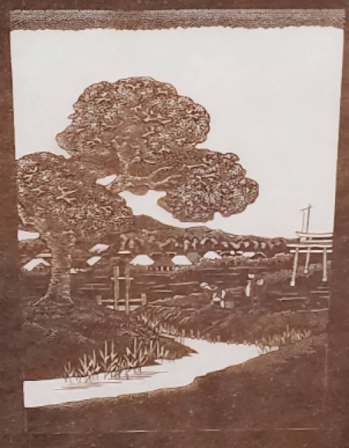 伊勢型紙は、美濃和紙に柿渋を塗った美しい茶色の和紙に、職人たちが手作業で一枚一枚彫り抜いて仕上げられています。