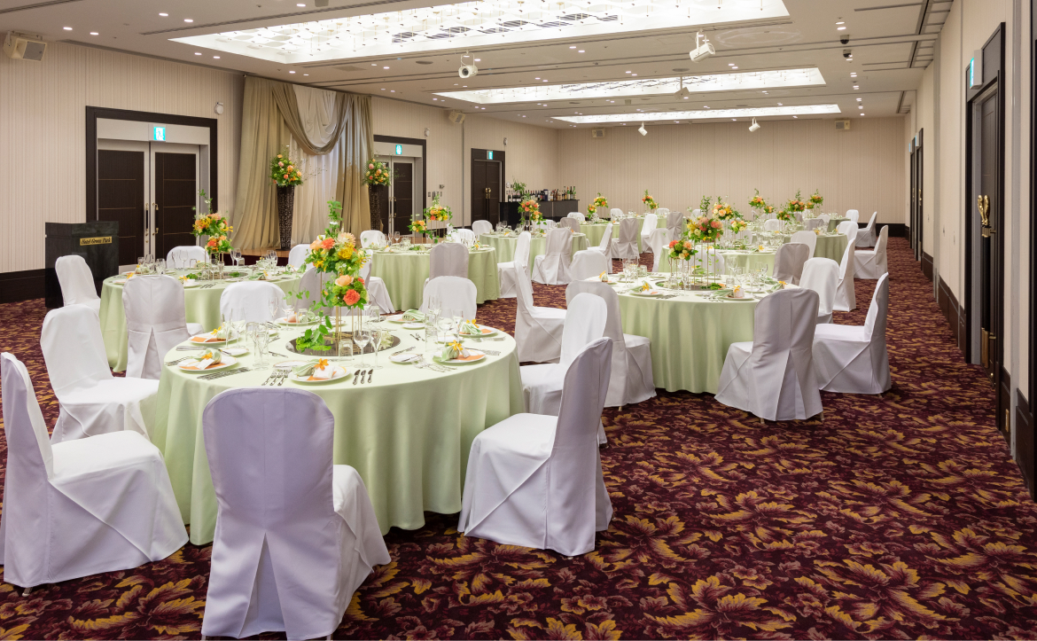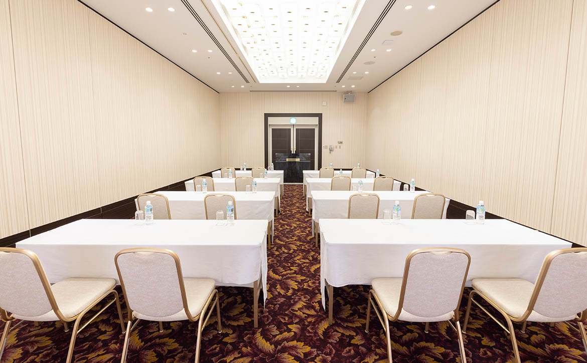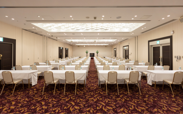 手ごろな規模で、セミナーや懇親会、ご披露宴などのお集まりに最適な中宴会場。