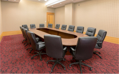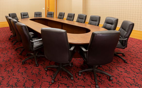 真っ赤な絨毯が特徴的な会議室
