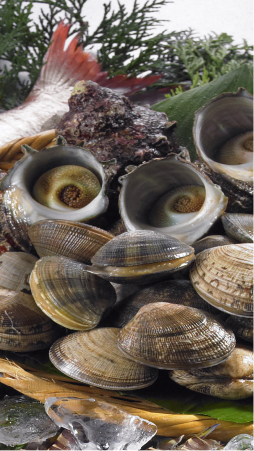 豊かな海で育まれる伊勢海老や貝類、極上のブランド牛など地元の食材をふんだんに取り入れております。