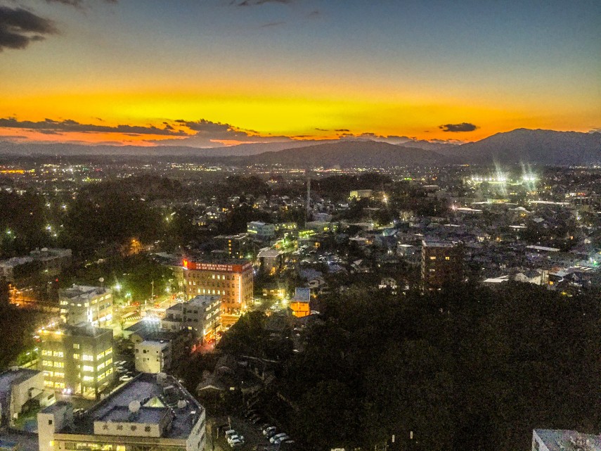 山側のお部屋からは布引山地へ沈んでいく美しい夕日をご覧いただく事が