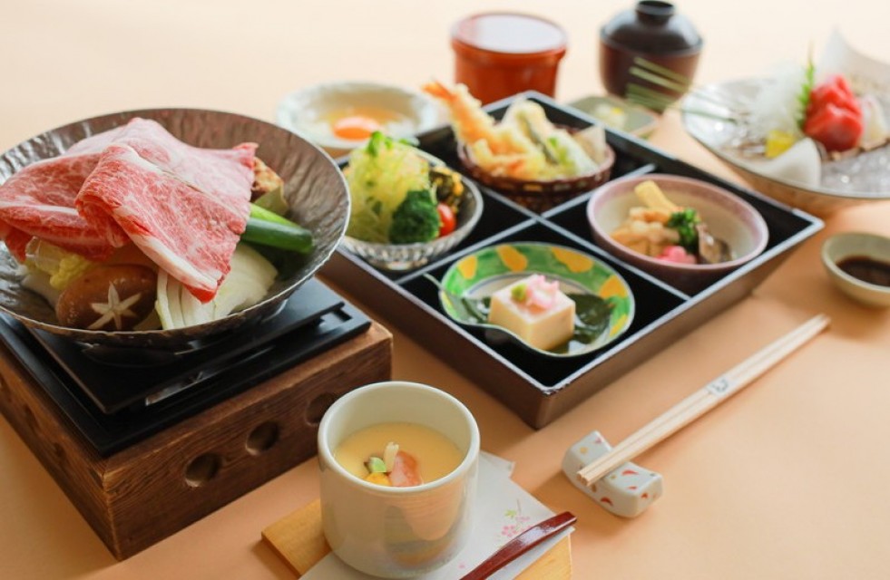 ※写真は松阪牛すき焼き鍋と三重まぐろのお造り膳です。