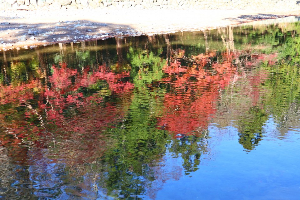 特に「御手洗場(みたらしば)」の水面に、色づいた紅葉が鏡のように映る景観が「この時期ならでは」の魅力です。