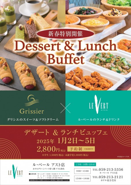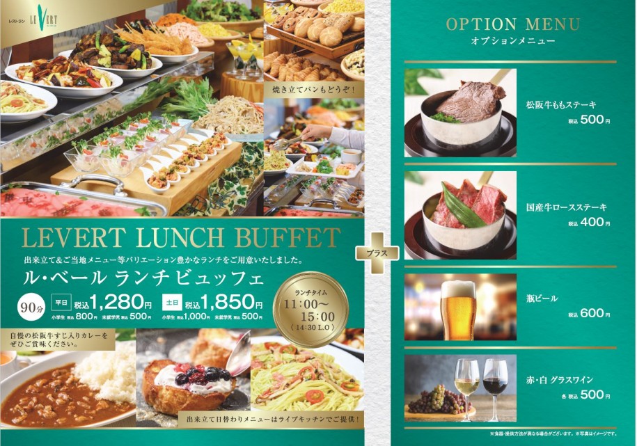 | 営業時間(ル・ベール) | ■朝食 6:30~10:00<9:30 L.O> ■ランチ 11:00~15:00<14:30 L.O> ※1月1日のランチは休業させていただきます。 朝食のみ通常営業になります。 |