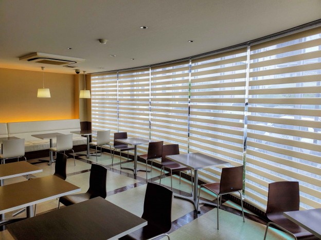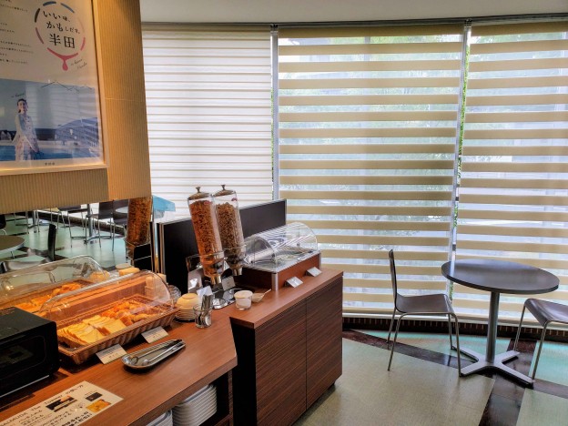 新しいカーテンは、以前より日差しを取り込み、朝食会場が明るくなりました。