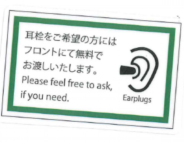 耳栓をご希望のお客様はフロントスタッフまでお声がけくださいませ。