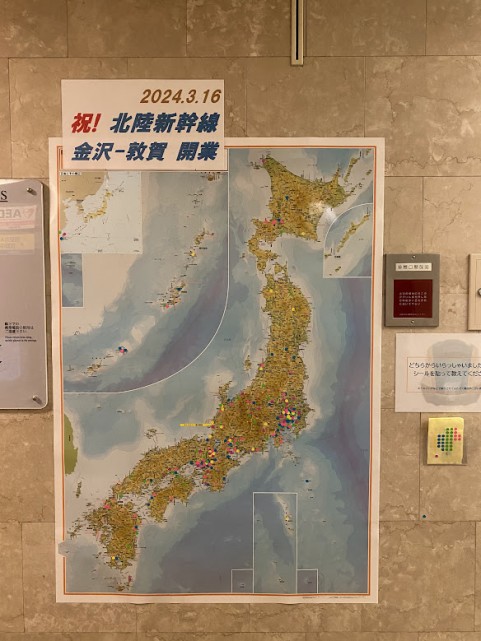 2階エレベータ―横に地図を貼り付け、お客様に住んでいる地域に