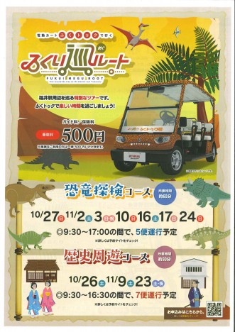 『電動カートふくトゥクで行く ふくい巡ルート』 乗車料500円で2コースから選べます。