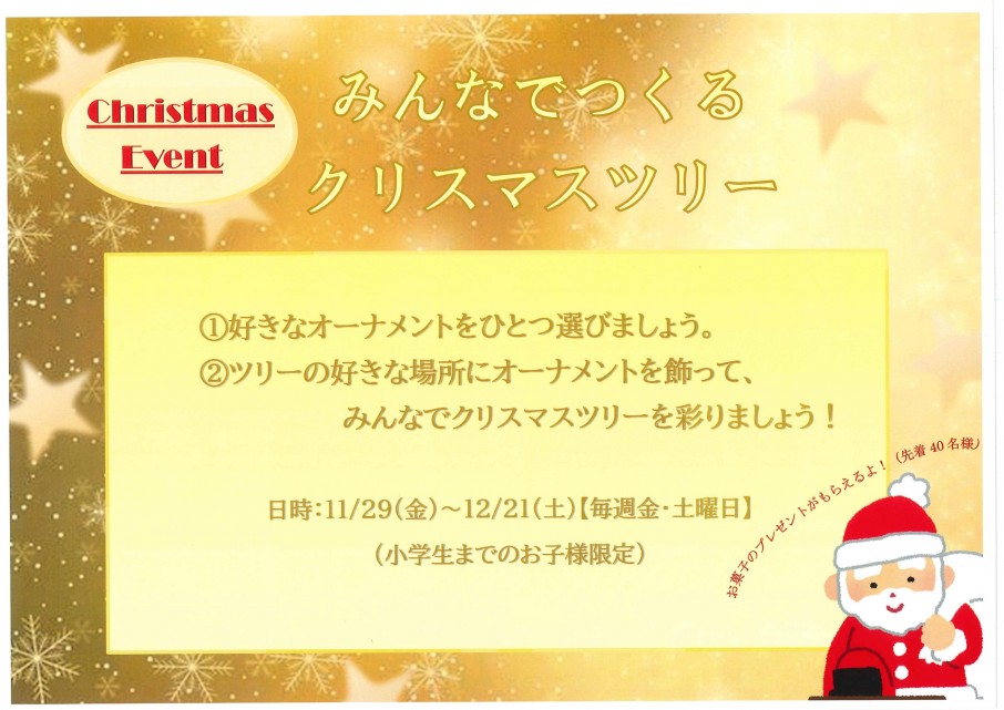 ご参加いただいたお子様には、素敵なクリスマスプレゼントを