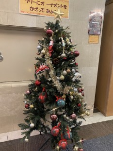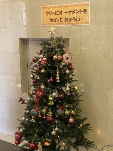 ロビーに設置のクリスマスツリーへご宿泊のみなさまにオーナメントを