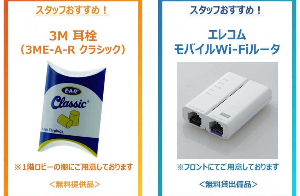 簡易的なものではございますが、無料提供品として「耳栓」をご用意いたしました。