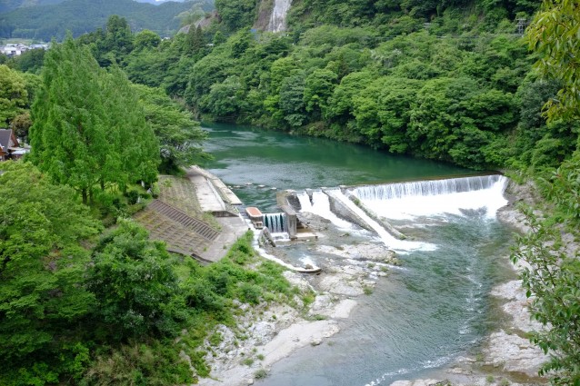 この茶倉駅からの眼下に見える堰、真っ赤な吊り橋を見渡せます。写真の絶景ポイントです。お魚も泳いでますよ!!