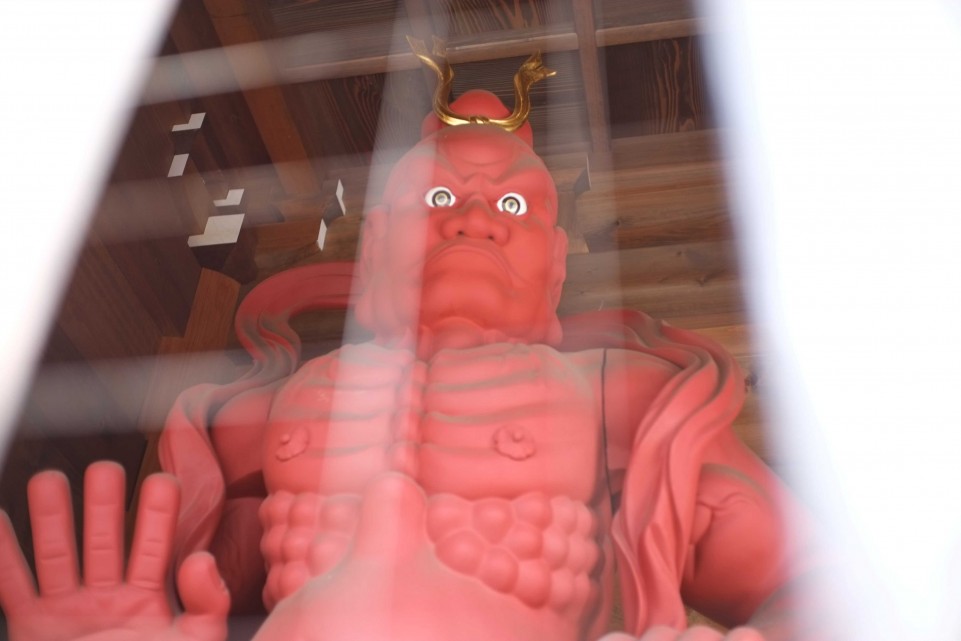 入り口には木造の山門があり、左右の金剛力士象が目を見張らしています。