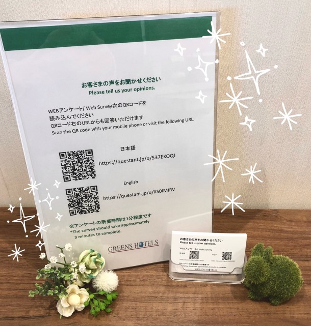 客室やフロントにて、QRコード記載のPOPを置いてございます♪