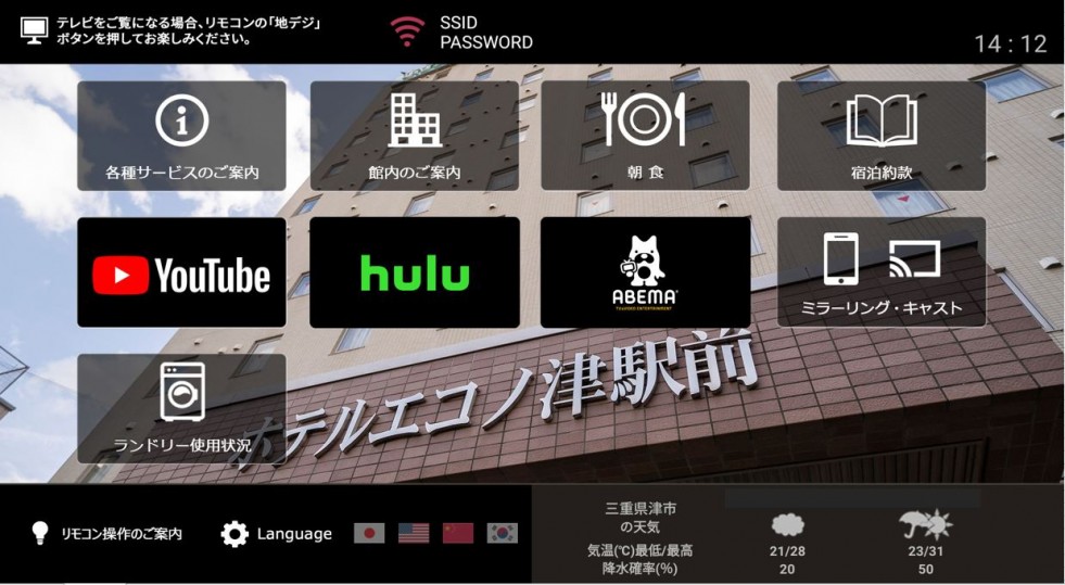 今回は新たに全室更新されたテレビのシステムをご紹介します。