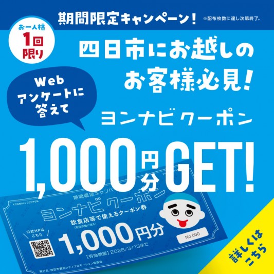 【ヨンナビ】 Webアンケートに答えてお得クーポンプレゼントキャンペーン実施中♪