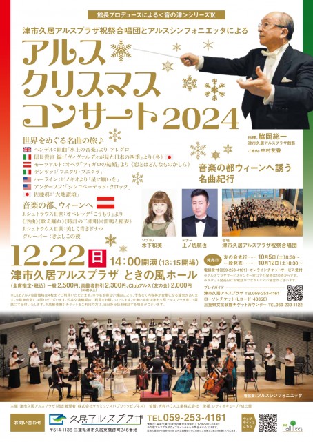 12月22日に「アルス クリスマスコンサート2024」が予定されています。