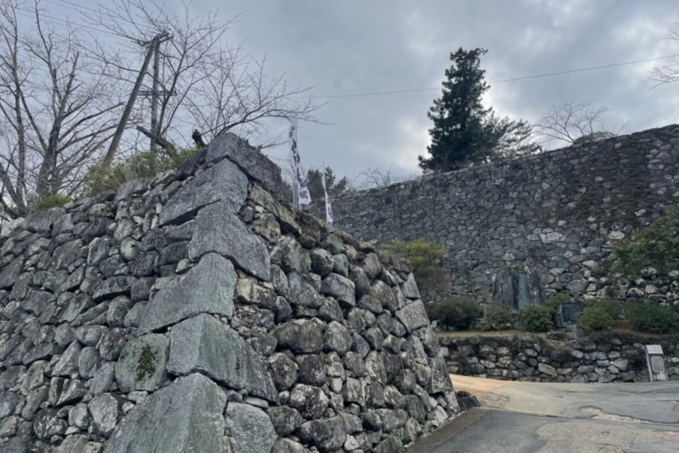 高く積み上げられた野面積み(のづらづみ)の石垣の前に立つと、当時の技術の高さと