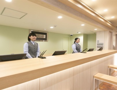 1F 【フロント24時間対応】 フロントは24時間対応なので、夜遅くなっても安心です。スタッフが笑顔で皆さまをお迎えします。