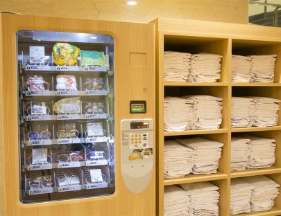 1F 【アメニティ自販機】 客室には必要最低限のアメニティのみのご用意となります。足りない分はロビー自販機にて購入いただけます。