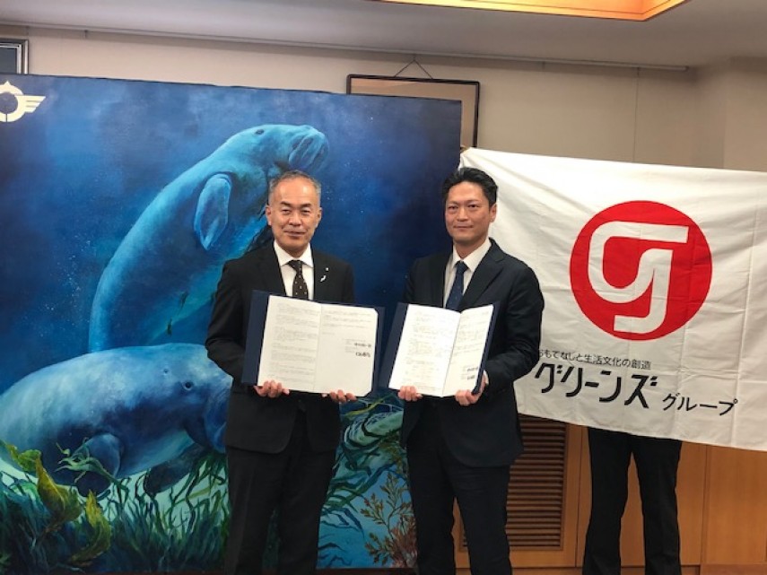 鳥羽市長 中村欣一郎氏(左) 株式会社グリーンズ代表取締役社長 村木雄哉(右)