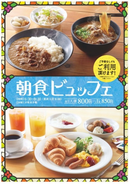 また、当ホテルのご朝食はご宿泊以外の方でも850円でご利用頂けます